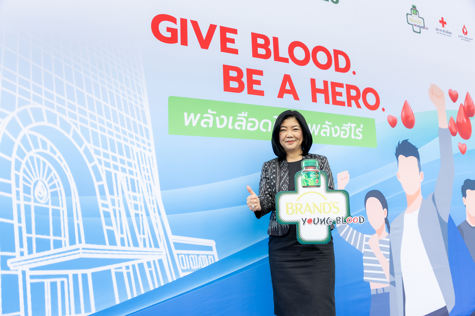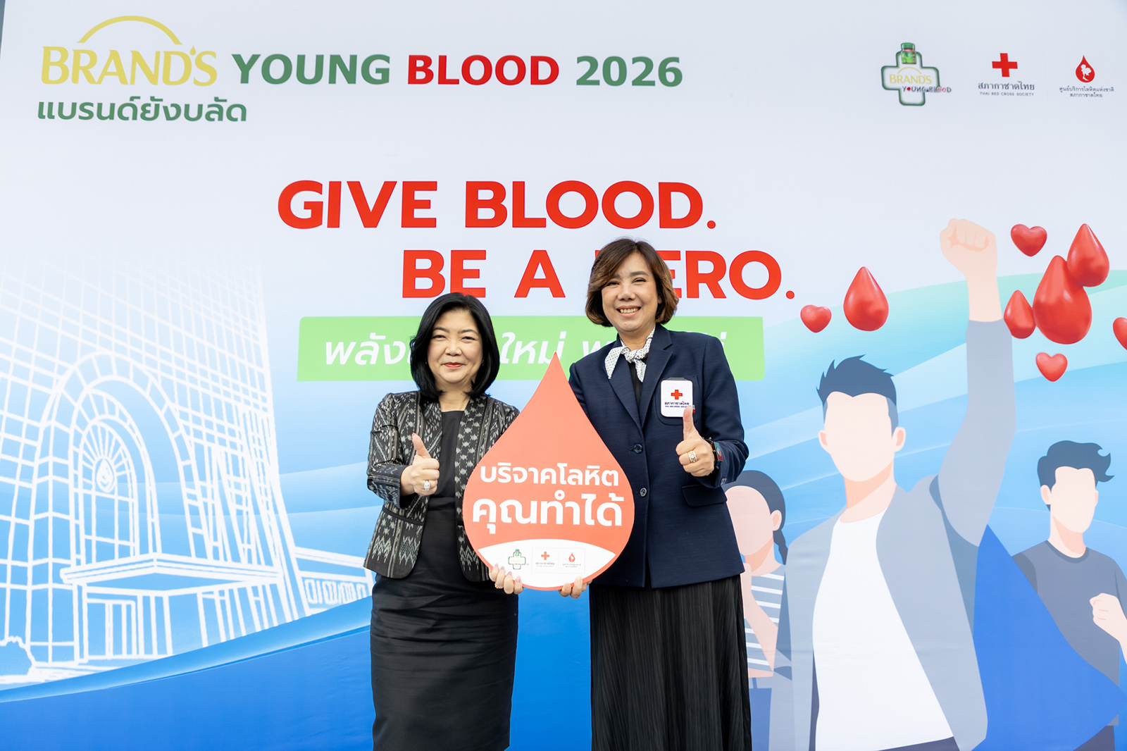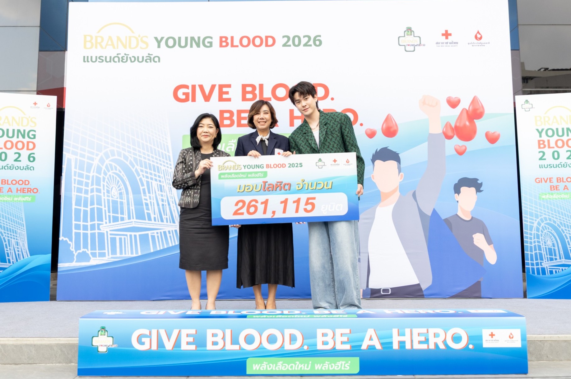 Jackie Jackrin Kungwankiatichai, a representative of the new generation, said, “I am delighted to once again be part of the ‘BRAND’S Young Blood’ project and would like to invite youth to take part in blood donation. It is much easier than many people think and can be done regularly every three months. All it takes is proper preparation, including getting enough rest with at least five hours of sleep, drinking plenty of water both before and after donating blood, and avoiding alcoholic beverages and high-fat foods prior to donation.”