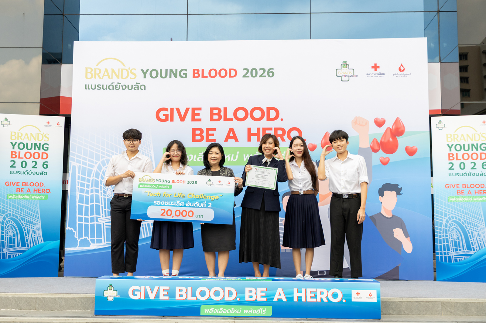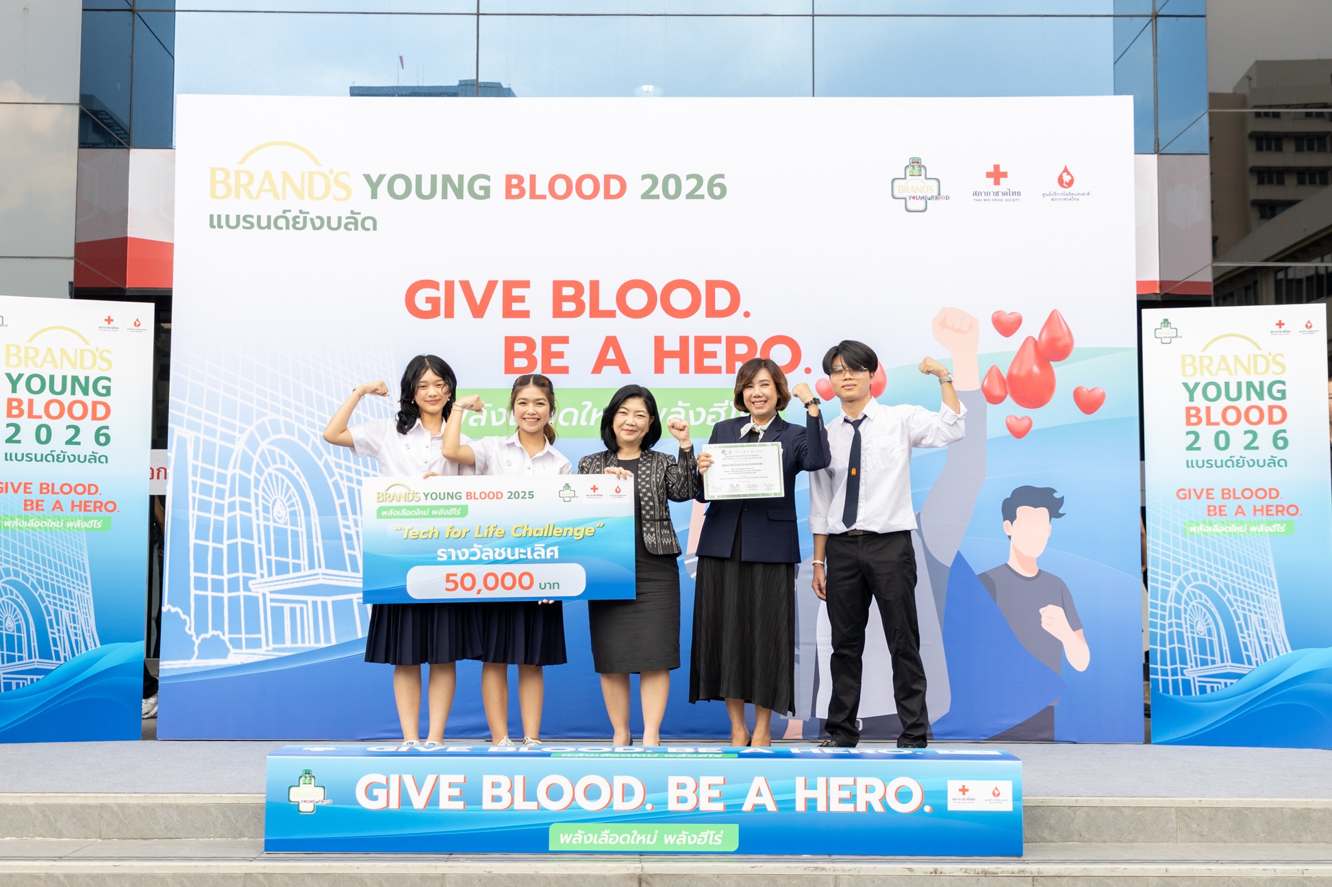 Be A Hero,’ the project aims to collect blood nationwide, while promoting Thai youth to play an active role in driving society forward through a wide range of creative activities, alongside instilling a spirit of giving as a vital foundation for the long-term sustainable development of Thai society. Since the project’s implementation in 2025, blood donations have been successfully collected from youth nationwide and delivered to the National Blood Centre, Thai Red Cross Society, to help sustain blood reserve levels and support patients in hospitals across the country, both under normal circumstances and in emergency situations. This reflects the collective power of givers that can truly transform ‘small acts of giving’ into ‘a greater collective power.’ On this occasion, I would like to congratulate the three student teams who won awards from the Tech for Life Challenge competition, an activity that promotes creative digital media ideas to encourage blood donation. We hope that the experience gained from the project will serve as an inspiration, strengthen leadership skills, and cultivate a sense of social responsibility among all youth participants.”